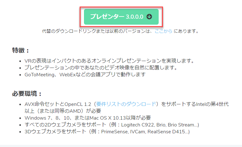 3.プレゼンターのダウンロード用のボタン(赤枠)をクリックしてダウンロードを開始します